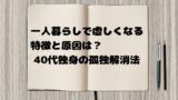 - 40代の一人暮らしで誰もが感じる孤独や不安の正体