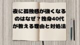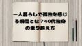 特に40代を過ぎて独身だと、この静けさが「老後」への恐怖と直結しやすいのです。
