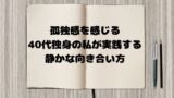 この記事では、私が実際に試してみて心が楽になった方法や、孤独感との上手な付き合い方について、私の体験談を交えながらお話ししていきたいと思います。