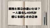 - 孤独感を受け入れて少しだけ前向きに生きるためのコツ